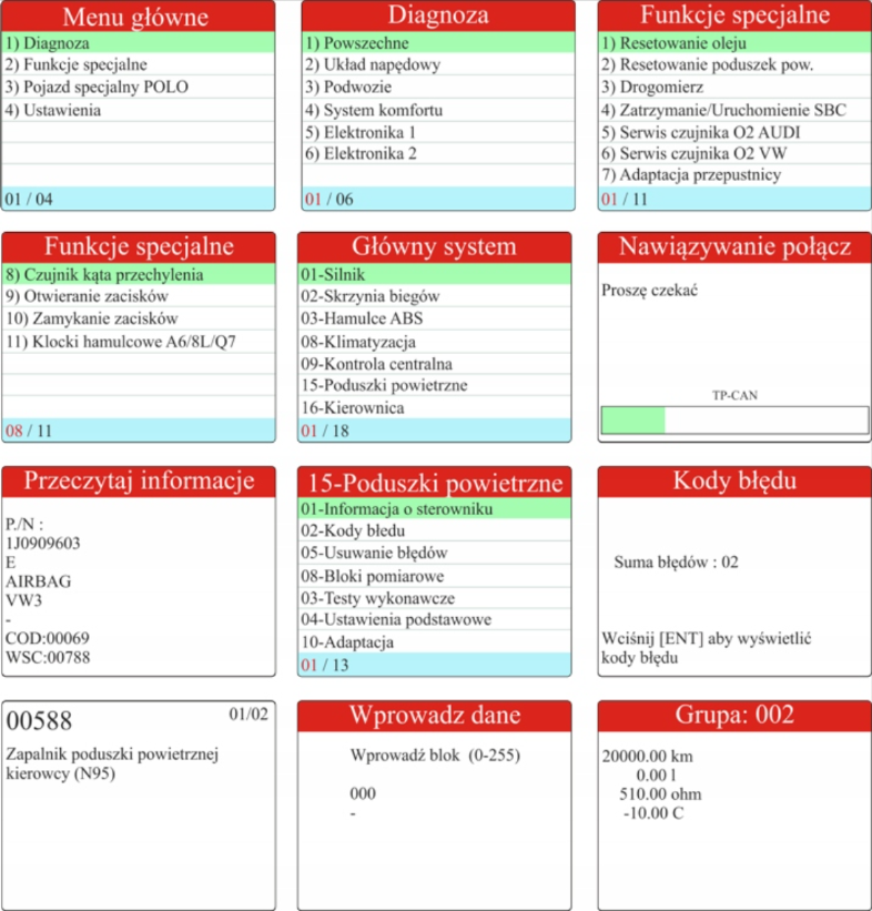 - Pe艂na diagnostyka grupy VAG: Skoda, Audi, Volkswagen, Seat.